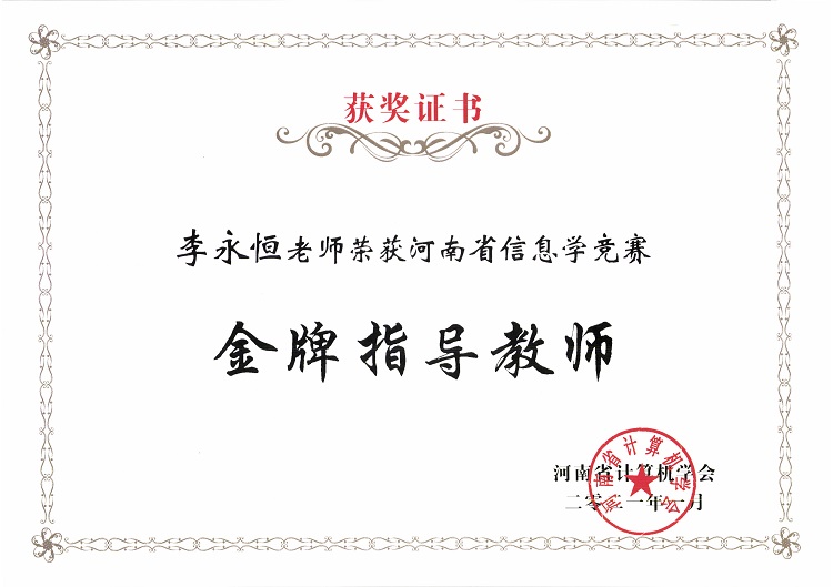 我校獲得河南省信息學(xué)競賽卓越學(xué)校榮譽稱號 |