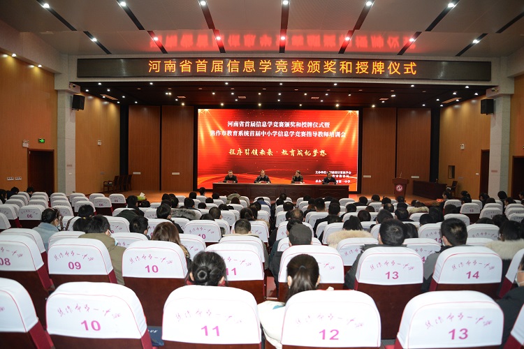 1月5日,河南省首屆信息學(xué)競賽頒獎和授牌儀式在焦作一中成功舉辦,我校被評為河南省信息學(xué)競賽卓越學(xué)校,并被指定為河南省信息學(xué)競賽考點;我校李永恒老師獲得河南省信息學(xué)競賽金牌指導(dǎo)教師,張輝老師獲得河南省信息學(xué)競賽優(yōu)秀指導(dǎo)教師;河南省信息學(xué)競賽李永恒金牌教練工作室獲得授牌。 安陽市第一中學(xué)信息學(xué)競賽培訓(xùn)班自2000年開始組建,以課外活動的方式,每年免費為學(xué)生提供600多節(jié)程序設(shè)計語言、算法和數(shù)據(jù)結(jié)構(gòu)等方面的培訓(xùn)課程。2015年以來,我校信息學(xué)競賽共獲1塊全國決賽金牌,2塊全國決賽銅牌,35個全國聯(lián)賽一等獎。學(xué)校先后被評為河南省中學(xué)生學(xué)科競賽先進(jìn)單位、河南省信息學(xué)奧林匹克競賽培訓(xùn)基地、信息學(xué)奧林匹克特色學(xué)校。