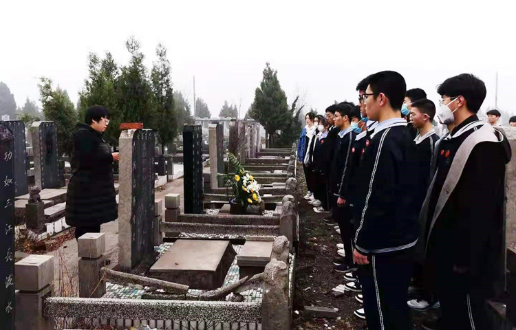為緬懷革命先烈,弘揚(yáng)愛(ài)國(guó)主義精神,加強(qiáng)革命傳統(tǒng)教育,傳承紅色基因,把我國(guó)傳統(tǒng)節(jié)日蘊(yùn)含的傳統(tǒng)美德融入到未成年人思想道德建設(shè)中,安陽(yáng)一中于3月27日上午組織部分青年教工、學(xué)生會(huì)團(tuán)總支成員40余人到鳳凰嶺公墓為張祥靜老師掃墓并敬獻(xiàn)花籃,緬懷張祥靜老師,表達(dá)作為晚輩的敬意。 張祥靜老師1921年出生于河北省行唐縣,大學(xué)畢業(yè)被分配到我校擔(dān)任數(shù)學(xué)教師。他生活非常簡(jiǎn)樸,工作認(rèn)真負(fù)責(zé)。1983年,他在彌留之際,將自己省吃儉用攢下的13000元現(xiàn)金全部捐給學(xué)校。學(xué)校以此為基金設(shè)立了“張祥靜”獎(jiǎng)學(xué)金,用于獎(jiǎng)勵(lì)那些品學(xué)兼優(yōu)的學(xué)生。2007年,經(jīng)全校教職工捐款、學(xué)?;I資,將此資金擴(kuò)充到20萬(wàn)元,逐步發(fā)展到現(xiàn)在的安陽(yáng)一中獎(jiǎng)學(xué)金。 張祥靜老師墓碑前,學(xué)生們列隊(duì)整齊,神情肅穆,敬獻(xiàn)花籃,默哀鞠躬。教師代表和學(xué)生代表致辭,表達(dá)了對(duì)張祥靜老師的敬仰之情,以及繼承先烈遺志、發(fā)揚(yáng)革命傳統(tǒng)的決心。 最后學(xué)生們?cè)谀贡扒f嚴(yán)宣誓,同學(xué)們立誓,要做“有理想、有道德、有文化、有紀(jì)律”的新時(shí)代社會(huì)主義接班人,為祖國(guó)的建設(shè)和發(fā)展做出自己應(yīng)有的貢獻(xiàn)。
