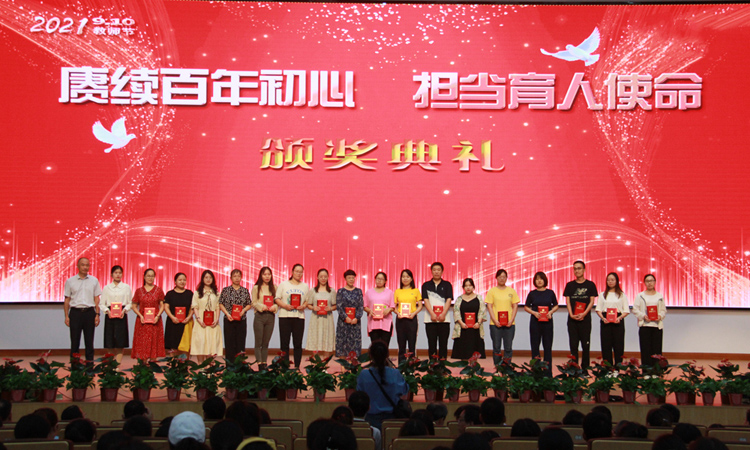 賡續(xù)百年初心,擔(dān)當(dāng)育人使命。9月10日下午,我校隆重召開慶祝第37個教師節(jié)暨表彰大會。 崔彥軍校長代表黨委和領(lǐng)導(dǎo)班子向全體教職工送上節(jié)日的問候。崔校長表示,暑假一場特大暴雨看到安陽一中人在危難時刻挺身而出的魄力與擔(dān)當(dāng):總務(wù)處和很多同志堅守在學(xué)校,更有人在停水停電的校園里堅守三天三夜;疫情來襲,學(xué)校的常態(tài)化疫情防控工作早已游刃有余。我們該為自己自豪,為安陽一中人在災(zāi)難中顯露出的精神氣自豪,為安陽一中人的家國情懷自豪。崔校長還勉勵青年教師,希望他們秉持教育初心,在工作中不斷拓展提升知識、見聞、思想和能力,相信年輕、朝氣、自信、個性的青年教師將為安陽一中賦予新的活力。 王國卿副校長宣讀表彰決定。大會對2020—2021學(xué)年的先進教研組、優(yōu)秀教師、優(yōu)秀教育工作者、優(yōu)秀青年教工、教學(xué)成績優(yōu)勝獎獲得者等先進集體和個人進行表彰。 教師代表王敏在發(fā)言中表示,教師的生命與激情是與講臺不可分割的,必須把職業(yè)生涯過成一種火熱的日子,才能永葆青春,對抗衰老;要用專業(yè)的高度捍衛(wèi)著職業(yè)的尊嚴,突破經(jīng)驗,做有思想的研究型名師,在日常教學(xué)研究中形成自己實踐中的智慧,從優(yōu)秀走向卓越;要享受職業(yè)的幸福感;找到做老師的職業(yè)美感;要把自己做成榜樣,帶領(lǐng)著一群人共同成長。引領(lǐng)學(xué)校的骨干教師“占領(lǐng)講臺,改進創(chuàng)新,超越講臺,教學(xué)理性”。 青年教師代表蘭珂表示,要以最飽滿的精神狀態(tài)、最積極的工作熱情投身到各項教育教學(xué)工作中去,搞好每一次教研、備好每一個教案 、關(guān)愛每一名學(xué)生,時刻告訴自己專業(yè)知識要不斷精進,教學(xué)經(jīng)驗要不斷積累,不帶疑問進教室,不留遺憾出課堂。守初心、擔(dān)使命,為教育事業(yè)貢獻自己的力量,為黨的百歲華誕獻禮! 學(xué)校為老師們送上了精美的小禮物,大會在《不忘初心》的歌聲里落下帷幕。 安陽一中將繼續(xù)全面貫徹黨的教育方針,落實立德樹人根本任務(wù),培養(yǎng)德智體美全面發(fā)展的社會主義建設(shè)者和接班人,努力辦好安陽人民家門口的好學(xué)校。 我校每年都舉辦教師節(jié)慶?;顒?,大力弘揚尊師重教的風(fēng)尚,積極營造關(guān)心、理解和支持教師的濃厚氛圍。 |