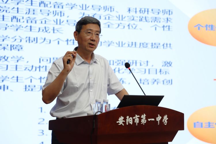 6月19日,福耀科技大學(xué)校長王樹國教授一行為安陽一中、正一中學(xué)以及全市各高中600余名師生、家長帶來了一場關(guān)于新技術(shù)革命下拔尖創(chuàng)新人才培養(yǎng)的精彩講座。此次交流活動兼具理論高度與實踐深度,更充滿教育情懷。 安陽一中黨委書記徐珍玲在致辭中對王校長及其專家團隊的到來表示熱烈的歡迎。她強調(diào),安陽一中與福耀科技大學(xué)雖然辦學(xué)層次和類型不同,但都有著共同的教育追求和使命。優(yōu)質(zhì)的教育資源需要共享,先進的教育理念需要交流,我們非常珍惜這次與王校長交流的機會,期待能夠借此機會深化兩校之間的合作與交流,共同推動教育事業(yè)的繁榮發(fā)展。 王校長以《新技術(shù)革命背景下拔尖創(chuàng)新人才的培養(yǎng)與成長》為主題,為在場師生、家長帶來了一場精彩紛呈的專題講座。他從“黨的二十大精神、新技術(shù)革命的特點和影響、新時代高等教育的變革途徑、探索與實踐——建設(shè)新型研究型大學(xué)”等五個方面進行授課。他強調(diào),當(dāng)前人工智能、量子信息、生物技術(shù)等前沿領(lǐng)域的新技術(shù)迅猛發(fā)展,深刻重塑全球秩序和發(fā)展格局,時代的變革對人才素質(zhì)提出了新的要求,一定會催生出一批優(yōu)秀的年輕人。王校長鼓勵在場學(xué)生,要積極投身于知識探索與實踐創(chuàng)新之中,遇到挑戰(zhàn)敢于迎難而上,做這場變革的參與者,爭做新時代的建設(shè)者,接力民族復(fù)興大任,賡續(xù)青年使命擔(dān)當(dāng)。 互動問答環(huán)節(jié)中,安陽一中學(xué)生十分珍惜與王校長交流的機會,積極踴躍提問,問題涵蓋了AI的發(fā)展與應(yīng)用、基礎(chǔ)學(xué)科如何促進產(chǎn)業(yè)發(fā)展、成為拔尖創(chuàng)新型人才需要具備的知識與技能等方面,王校長對同學(xué)們的問題進行了耐心細(xì)致地解答,他結(jié)合理論知識和實際案例,深入淺出剖析問題,引導(dǎo)同學(xué)們從不同角度思考,拓寬思維視野。 同學(xué)們紛紛表示,在新技術(shù)革命背景下,要將個人成長與國家需求緊密相連,勤奮鉆研,積極實踐,培養(yǎng)創(chuàng)新精神、綜合素養(yǎng)。現(xiàn)場氣氛十分熱烈,掌聲雷動,經(jīng)久不息。 新技術(shù)革命背景下,高校與中學(xué)需緊密聯(lián)系,從興趣激發(fā)、潛質(zhì)挖掘到創(chuàng)新思維,協(xié)同構(gòu)建貫通式培養(yǎng)體系。福耀科技大學(xué)作為新型研究型大學(xué),強化科技教育和人文教育協(xié)同,安陽一中作為首批河南省特色高中(科技類),一直致力于激發(fā)學(xué)生的潛能,培養(yǎng)他們的興趣愛好,讓他們在探索和創(chuàng)新之中前行。今后,我校將持續(xù)為莘莘學(xué)子搭建優(yōu)質(zhì)平臺,與高校攜手,實現(xiàn)教育資源共享,共同培養(yǎng)更多拔尖創(chuàng)新人才。 |