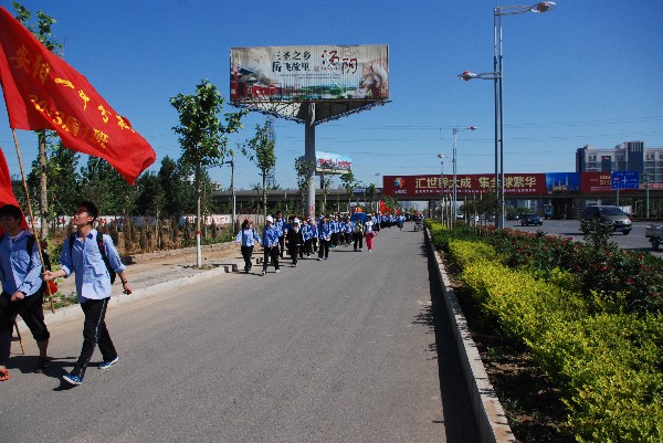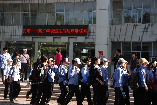 5月11日,安陽一中和安陽一中分校組織2013屆高三學(xué)子進行了“挑戰(zhàn)自我,輝煌六月”大型遠足活動。具體路線由安陽一中和分校出發(fā)至湯陰毓秀園,全程23公里。組織這次活動的目的,是為了讓面臨高考的學(xué)生暫時放松一下身心,緩解高考壓力;同時也為了鍛煉學(xué)生的體魄,磨練意志,挑戰(zhàn)自我,促進協(xié)作,為即將到來的高考做一次精神淬火。
