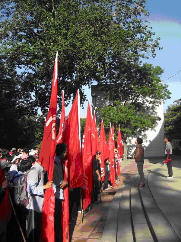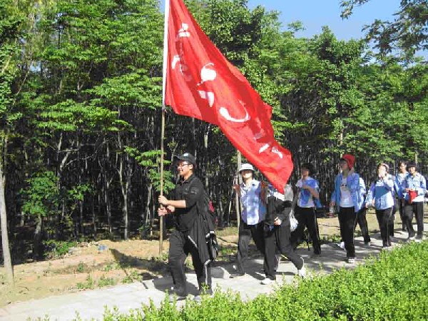上午7點,黃艷校長做了動員講話。7點半,同學(xué)們在校旗、團旗和班旗的指引下,以班級為建制,隊列整齊,精神昂揚地向目的地進發(fā)。