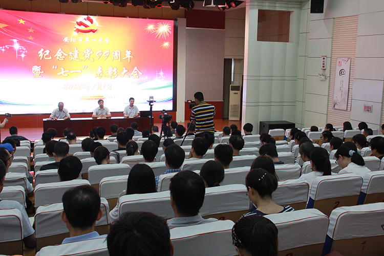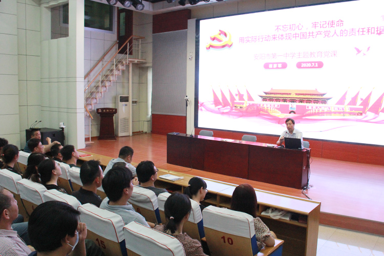 7月1日下午,我校在電教樓五樓報告廳召開紀念建黨99周年暨“七一”表彰大會,全體黨員參加了會議。 大會在莊嚴的國際歌中開始,首先對2019年度優(yōu)秀黨員進行了表彰。隨后,黨委書記、校長崔彥軍為全體黨員上了題為《不忘初心,牢記使命——用實際行動來體現(xiàn)中國共產(chǎn)黨人的責任和擔當》的微黨課。 黨課中,崔校長回顧了我國建國以來在政治、經(jīng)濟和科技方面取得的重大成就,并帶領(lǐng)廣大黨員重溫共產(chǎn)黨人的初心使命,號召全體黨員同志全面貫徹黨的教育方針,勇?lián)鷮W(xué)校發(fā)展的歷史使命和責任。崔校長還向全體黨員提出殷切期望,希望大家迅速提升自己的專業(yè)素養(yǎng),不斷提高自己的工作標準和要求,服從學(xué)校工作安排并做好表率,團結(jié)帶領(lǐng)廣大教職工做好各項工作,一起努力辦好安陽人民家門口的好學(xué)校。 活動最后,全體黨員觀看了紀錄片《教師:生命與使命同行》,學(xué)習(xí)了“人民教育家”于漪的教育事跡。