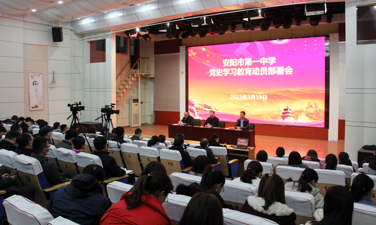 3月19日下午,我校召開黨史學(xué)習(xí)教育動員部署大會,就我校黨史學(xué)習(xí)教育進(jìn)行具體安排。安陽市第一中學(xué)黨委書記、校長崔彥軍出席會議并講話。學(xué)校領(lǐng)導(dǎo)班子,一中校區(qū)全體黨員,各總支、各支部支委,全體中層干部參加了會議。 崔彥軍指出,在全黨開展中共黨史學(xué)習(xí)教育是牢記初心使命、推進(jìn)中華民族偉大復(fù)興歷史偉業(yè)的必然要求,是堅定信仰信念、在新時代堅持和發(fā)展中國特色社會主義的必然要求,是推進(jìn)黨的自我革命、永葆黨的生機(jī)活力的必然要求。學(xué)校全體黨員干部要深刻認(rèn)識到黨史學(xué)習(xí)教育的重要性。 崔彥軍強(qiáng)調(diào),要在以史為鑒中,進(jìn)一步增強(qiáng)“四個意識”,更加堅定“四個自信”,堅決做到“兩個維護(hù)”,將黨史學(xué)習(xí)教育與教育教學(xué)結(jié)合,要把通過學(xué)習(xí)教育使全校黨員教師煥發(fā)出來的熱情轉(zhuǎn)化為攻堅克難、干事創(chuàng)業(yè)的實際成果。 崔彥軍表示,各支部要通過強(qiáng)化責(zé)任傳導(dǎo)、強(qiáng)化輿論氛圍、強(qiáng)化督促檢查,切實加強(qiáng)黨史學(xué)習(xí)教育的責(zé)任落實。確保學(xué)習(xí)教育取得實效。 大會宣讀了《中共安陽市第一中學(xué)委員會關(guān)于開展黨史學(xué)習(xí)教育的實施方案》,成立了安陽市第一中學(xué)學(xué)習(xí)教育領(lǐng)導(dǎo)小組。