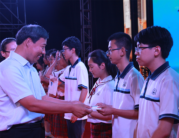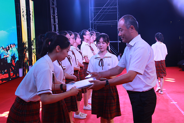 樹(shù)蔭滿地,石榴花開(kāi)。又到一年畢業(yè)季。6月20日晚,我校“一中·藍(lán)”2019屆畢業(yè)典禮在操場(chǎng)隆重舉行,全體師生、2019屆學(xué)生的家長(zhǎng)以及我市部分初中的在校學(xué)生,一起見(jiàn)證了這一難忘時(shí)刻。 在大家的歡呼聲中開(kāi)場(chǎng)舞《not today》引爆了全場(chǎng),隨后深情的畢業(yè)詩(shī)歌朗誦《我們離開(kāi)了安陽(yáng)一中》,又讓人感動(dòng)不已。同學(xué)們用原創(chuàng)的長(zhǎng)詩(shī)、自制的視頻和高中生活說(shuō)再見(jiàn),視頻上的點(diǎn)點(diǎn)滴滴都是他們對(duì)學(xué)校的回憶。老師們也為同學(xué)們送上最真誠(chéng)的祝福,師生依依惜別,不舍的惆悵在空氣中彌漫。 陳朝陽(yáng)副校長(zhǎng)代表學(xué)校接受了各班贈(zèng)送給學(xué)校的畢業(yè)留言冊(cè),王國(guó)卿副校長(zhǎng)向?qū)W生代表贈(zèng)送校友卡和畢業(yè)紀(jì)念冊(cè)。學(xué)校后勤工作人員代表作為特別嘉賓,抽取了14名幸運(yùn)同學(xué),崔彥軍副校長(zhǎng)現(xiàn)場(chǎng)為他們頒發(fā)畢業(yè)證書。 最后,崔彥軍副校長(zhǎng)致辭,向2019屆畢業(yè)生和畢業(yè)生家長(zhǎng)表示祝賀,強(qiáng)調(diào)了我校的“以人為本、全面育人”的教育理念,強(qiáng)調(diào)了勞動(dòng)的重要性,勉勵(lì)同學(xué)們繼續(xù)發(fā)揚(yáng)我校“崇尚科學(xué)、志存高遠(yuǎn)、不尚浮華”的優(yōu)良學(xué)風(fēng),希望大家能堅(jiān)持讀好書,成為敢于擔(dān)當(dāng)勇于奉獻(xiàn)、具有家國(guó)情懷的人,在未來(lái)的道路上,能夠繼續(xù)沿著求真理、悟道理、明事理的方向前進(jìn),成長(zhǎng)為一個(gè)對(duì)社會(huì)、對(duì)國(guó)家更有用的人。 離別,是為了更好的出發(fā)。相信2019屆的同學(xué)們帶著美好的回憶和母校的祝福,會(huì)走的更高更遠(yuǎn),天高地闊,馳騁翱翔!