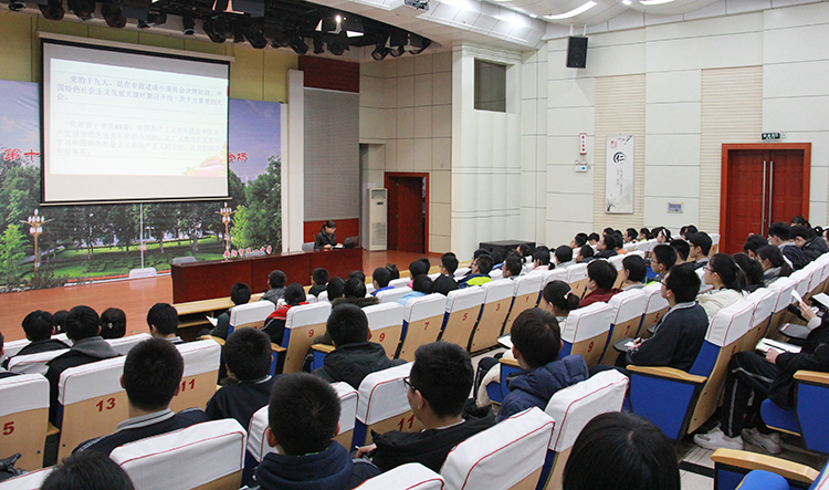 12月26日下午,胡玉潔老師在電教樓5報告廳為我校學生會干部、團總支成員和各班學生代表上了一堂題為《深學篤踐十九大青春接力新時代》的十九大主題知識團課。 胡玉潔老師從共青團員學習十九大的重要意義、解讀十九大報告核心內(nèi)容、共青團員在新時代的光榮使命等三個方面向同學們作了講解。她引導同學們思考,作為團員如何履行新時代賦予的歷史使命,鼓勵大家要帶頭堅定信念、帶頭刻苦學習、帶頭爭創(chuàng)佳績、帶頭弘揚新風,不忘初心跟黨走,爭做時代的弄潮兒。胡老師的講解結(jié)合生活實際,深入淺出,同學們聽得津津有味,對十九大的認識和體會進一步加深,思想覺悟有了進一步提高。 正如習總書記在十九大報告中強調(diào)的,青年興則國家興,青年強則國家強,青年一代有理想、有本領(lǐng)、有擔當,國家就有前途,民族就有希望。我校將繼續(xù)立足校園,舉辦各種活動,宣傳黨的十九大知識,為新時代培養(yǎng)更好、更多的人才,辦好人民滿意的教育。