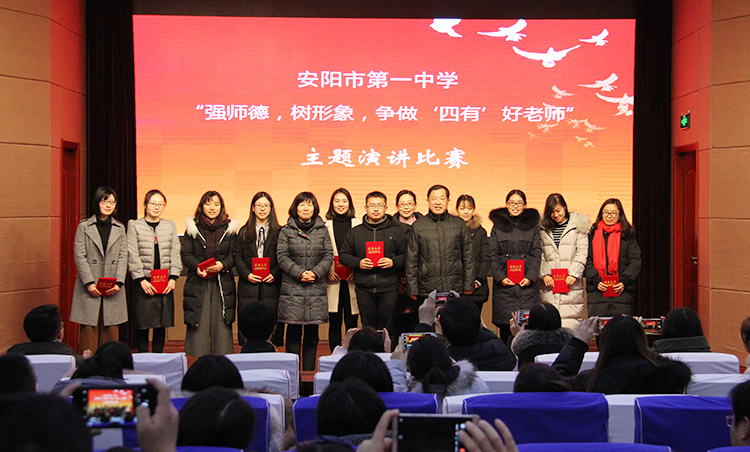 為深入學(xué)習(xí)貫徹黨的十九大精神,全面加強新形勢下師德師風(fēng)建設(shè),1月4日下午我校在實驗樓4樓報告廳舉行了“強師德,樹形象,爭做‘四有’好老師”主題演講比賽。 本次比賽以教研組為單位,每個教研組推選一名教師參加。有著20年教齡的葛曉明老師,講述了與求學(xué)路上那些好老師的動人故事,老師言行對學(xué)生產(chǎn)生深遠影響的切身經(jīng)歷,讓現(xiàn)場的教工深受震撼。作為重回母校工作的新老師,田琳琳老師分享了自己工作以來的所見所感,從學(xué)生到老師的身份轉(zhuǎn)變,讓她更加理解教師這份職業(yè)的崇高。一句句充滿愛意的語言,一顆顆全心全意為學(xué)生的心,還有對教師職業(yè)的濃濃敬畏之情,使現(xiàn)場的老師十分感動,連寒冷的天氣似乎也變得格外溫暖。最終,語文組楊鵬程老師憑借生動幽默的語言和穩(wěn)健大方的臺風(fēng),得到評委的好評,榮獲一等獎。黃艷校長和戴志良書記為獲獎教師頒獎,并合影留念。 一所學(xué)校的發(fā)展,離不開一支高素質(zhì)的教師隊伍。加強師德師風(fēng)建設(shè),是提高教師隊伍素質(zhì)的根本。我校將通過各種途徑,不斷加強教師師德師風(fēng)建設(shè),努力打造一支師德高尚、作風(fēng)優(yōu)良、業(yè)務(wù)精湛的教職工隊伍,辦人民群眾家門口的好學(xué)校。