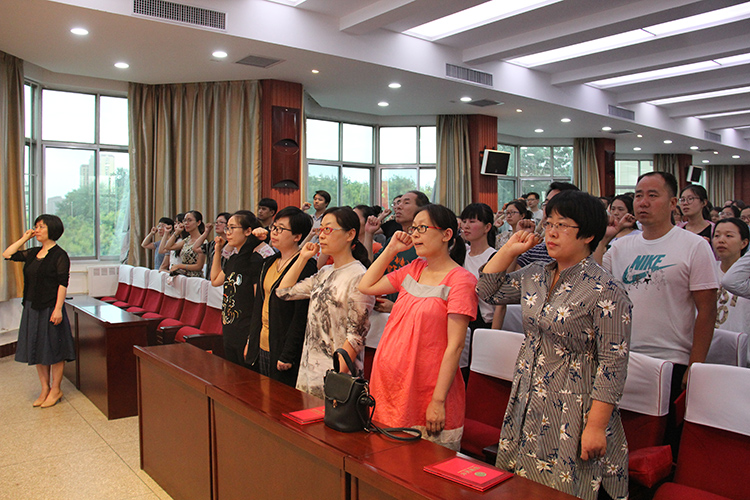 6月29日下午,我校在實(shí)驗(yàn)樓四樓報(bào)告廳召開紀(jì)念建黨97周年暨“七一”表彰大會(huì),全體黨員參加了會(huì)議。 大會(huì)在莊嚴(yán)的國(guó)際歌中開始,對(duì)2017年度優(yōu)秀黨員進(jìn)行了表彰。隨后,全體黨員面向黨旗,再次鄭重宣誓,重溫入黨誓詞。 崔彥軍副校長(zhǎng)代表學(xué)校黨委講話。他鼓勵(lì)廣大黨員要不斷加強(qiáng)學(xué)習(xí),牢記黨的宗旨,堅(jiān)定理想信念,積極發(fā)揮黨員的先鋒模范作用,做有理想信念、有道德情操、有扎實(shí)學(xué)識(shí)、有仁愛之心的好老師。 最后,黃艷校長(zhǎng)給全體黨員上了《共產(chǎn)黨員的權(quán)利和義務(wù)》的黨課。她對(duì)照黨章要求,通過案例分析,結(jié)合教育工作實(shí)際,向全體黨員進(jìn)一步明確了黨員的權(quán)利、義務(wù),以及黨員權(quán)利和義務(wù)之間的關(guān)系,要求廣大黨員要有黨員身份意識(shí),在工作中以身作則,做“四有”好老師的表率。 “七一”前后,我校將開展以“不忘初心,牢記使命”為主題的支部黨日活動(dòng)和“黨員主題活動(dòng)日”行動(dòng),并召開組織生活會(huì),組織黨員參加“不忘初心為群眾、牢記使命爭(zhēng)先鋒”黨的知識(shí)競(jìng)賽等系列活動(dòng),以實(shí)際行動(dòng)紀(jì)念建黨97周年。