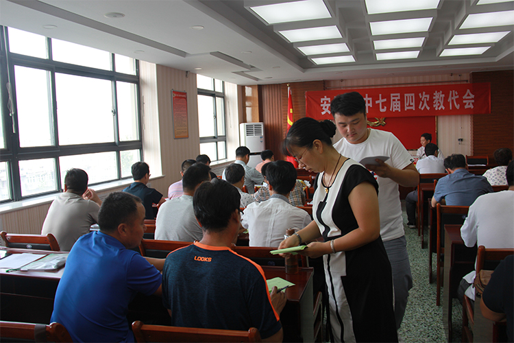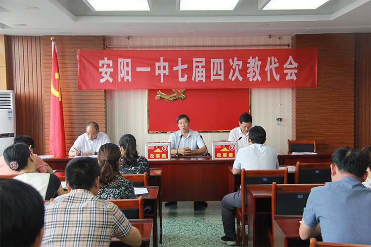 我校第七屆教職工代表大會(huì)第四次會(huì)議,7月12日下午在綜合樓613會(huì)議室隆重召開(kāi)。本次會(huì)議的議題是:修改《安陽(yáng)市第一中學(xué)獎(jiǎng)勵(lì)性績(jī)效工資方案》和《安陽(yáng)市第一中學(xué)教師中、高級(jí)專業(yè)技術(shù)職務(wù)任職資格推薦實(shí)施細(xì)則》(下文簡(jiǎn)稱《方案》、《細(xì)則》)中的部分條款。會(huì)議由王國(guó)卿副校長(zhǎng)主持,工會(huì)常務(wù)副主席、副校長(zhǎng)陳朝陽(yáng)致開(kāi)幕詞,工會(huì)主席、副校長(zhǎng)崔彥軍做了講話。會(huì)議應(yīng)到代表63人,因事、因病請(qǐng)假4人,實(shí)到59人,符合法定人數(shù)。 會(huì)議在莊嚴(yán)的國(guó)歌聲中開(kāi)幕,陳朝陽(yáng)副校長(zhǎng)在致辭中,回顧了一年來(lái),學(xué)校圍繞“師生友好•科學(xué)發(fā)展”開(kāi)展的主要工作,指出教代會(huì)對(duì)發(fā)揮教職工的主人翁意識(shí),促進(jìn)民主、科學(xué)管理,有著重要作用。辦公室主任吳燕對(duì)《方案》、《細(xì)則》中部分條款的擬修改意見(jiàn)進(jìn)行了說(shuō)明和解釋。