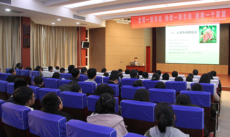 3月22日下午,我校在實驗樓4樓報告廳舉行防癌健康知識講座。安陽市腫瘤醫(yī)院大內科主任、主任醫(yī)師、碩士生導師、二級教授王俊生為我校部分師生做了題為《健康一生,遠離疾病》的報告。 王俊生教授從人的壽命入手,講述了影響壽命的因素,提醒大家要保持健康的飲食習慣、規(guī)律的生活方式和良好的情緒狀態(tài),進一步減少疾病的發(fā)生。王教授還針對我國癌癥發(fā)病情況和癌癥特點,重點講述了定期體檢和疾病預防的重要性。 健康是人類最大的財富。我校將通過各種形式,在教職工中倡導健康的生活方式,樹立健康理念,增強保健意識,在校園里形成人人重視,健康向上的生活氛圍。