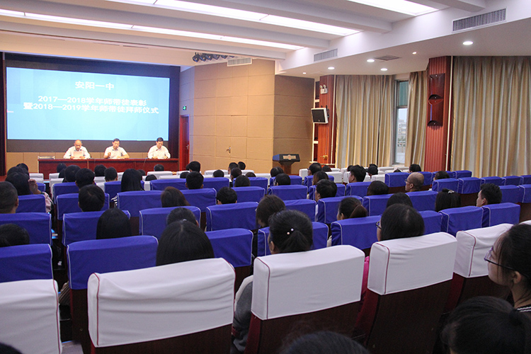 9月27日下午,我校在實(shí)驗(yàn)樓4樓報(bào)告廳舉行2017—2018學(xué)年“師帶徒”表彰暨2018—2019學(xué)年“師帶徒”拜師儀式。 大會首先對上學(xué)年的優(yōu)秀指導(dǎo)教師進(jìn)行了表彰,劉海峰等10位指導(dǎo)教師獲得2017-2018學(xué)年師帶徒活動一等獎。杜艷老師作為優(yōu)秀指導(dǎo)教師代表介紹了一年以來自己的指導(dǎo)經(jīng)驗(yàn);從師教師代表武肖潔結(jié)合自己的工作實(shí)際,講述了自己是在“師傅”的指導(dǎo)下,教育教學(xué)及學(xué)生管理方面取得快速進(jìn)步的成長故事。 隨后,拜師儀式正式開始。教研處聶光明主任首先解讀了本學(xué)年“師帶徒”活動的具體要求和驗(yàn)收辦法。大會宣讀了本學(xué)年“師帶徒”指導(dǎo)教師和從師教師名單,并向本學(xué)年“師帶徒”指導(dǎo)教師頒發(fā)了聘任證書。指導(dǎo)教師和從師教師現(xiàn)場簽訂了《師帶徒協(xié)議書》,從師教師向指導(dǎo)教師深情鞠躬并獻(xiàn)上了自己精心準(zhǔn)備的小禮物。本學(xué)年的指導(dǎo)教師代表孫璐老師及青年教師代表王麗萍老師作了表態(tài)發(fā)言。 崔彥軍副校長指出,“師帶徒”活動是我校的一項(xiàng)優(yōu)良傳統(tǒng),對青年教師成長,促進(jìn)教師間共同發(fā)展、共同進(jìn)步、共同提高有著顯著的作用。崔校長希望指導(dǎo)教師能夠以身作則,給予青年教師全方位的指導(dǎo),既嚴(yán)格要求,又關(guān)心愛護(hù),幫助青年教師盡快成長。對于青年教師,崔校長希望大家能夠?qū)⒔虒W(xué)工作放在首位,在工作中與學(xué)生和家長多溝通,迅速適應(yīng)高中教學(xué)工作。相信通過“師帶徒”這一優(yōu)良傳統(tǒng),我校教育教學(xué)質(zhì)量將再上新臺階。