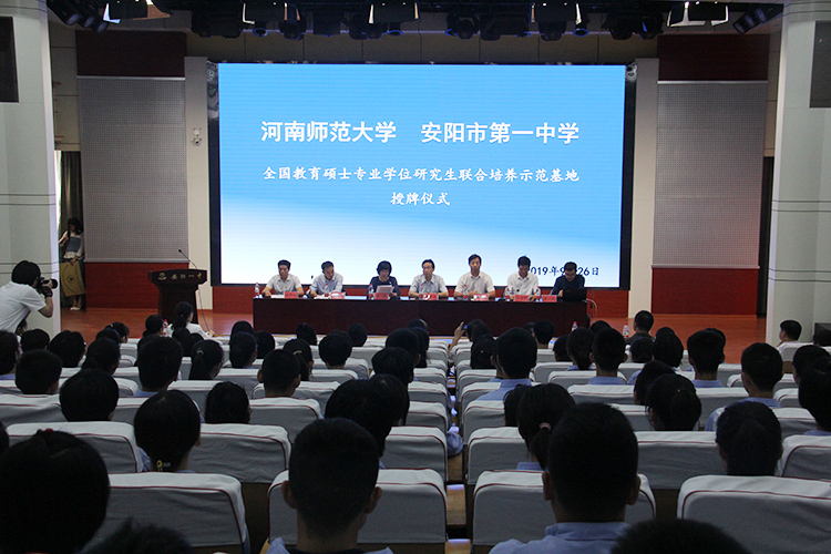 9月26日上午,全國教育碩士專業(yè)學位研究生聯合培養(yǎng)示范基地授牌儀式在我校舉行。河南師范大學研究生院院長張貴生、黨委研究生工作部部長許天心,市教育局局長黃艷,安陽一中校長崔彥軍、副校長王國卿等出席本次活動。 市教育局局長黃艷為此次授牌活動致辭,河師大梁書斌院長宣讀了《關于公布 “全國教育碩士專業(yè)學位研究生聯合培養(yǎng)示范基地”》的通知,隨后,河師大張貴生院長為我校全國教育碩士專業(yè)學位研究生聯合培養(yǎng)示范基地授牌。 崔彥軍校長在發(fā)言中表示,我校將逐步完善教育專業(yè)碩士聯合培養(yǎng)機制,切實加強基地建設;我校也將以此次授牌為契機,與河南師范大學建立深度交流合作,聚合力量,共謀發(fā)展。河師大許天心部長介紹了河南師范大學研究生院和聯合培養(yǎng)基地的基本情況,并向兼職導師和學生提出了殷切期望。 最后,河師大數學與信息科學學院董樂博士為同學們帶來了題為《從三次數學危機到大數學觀》專題講座。 我校是75個全國教育碩士專業(yè)學位研究生聯合培養(yǎng)示范基地之一,本學年,有13位教師成為河南師范大學校外指導老師,涉及7個學科。