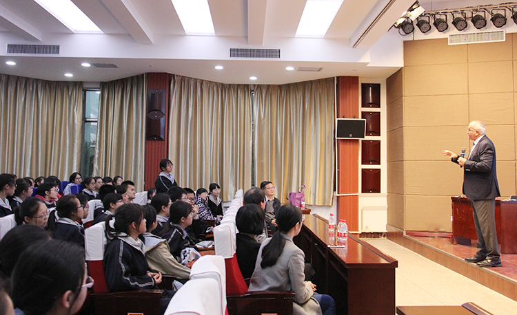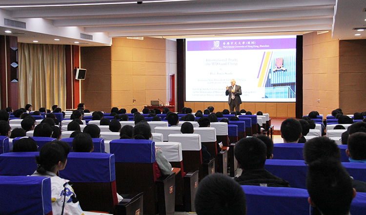 4月3日下午,香港中文大學(xué)(深圳)協(xié)理副校長(zhǎng)Seade教授在實(shí)驗(yàn)樓報(bào)告廳為我校部分師生做了《International Trade, the WTO and China》的學(xué)術(shù)講座。 Seade教授運(yùn)用經(jīng)濟(jì)學(xué)的知識(shí),為同學(xué)們科普了國(guó)際貿(mào)易的決定因素、國(guó)際貿(mào)易對(duì)世界各國(guó)的意義、世界貿(mào)易組織的功能以及對(duì)中國(guó)的影響等。Seade教授全程用英文講課,同學(xué)們聽得津津有味,現(xiàn)場(chǎng)爆發(fā)出數(shù)次掌聲。問答環(huán)節(jié),Seade教授與同學(xué)們親切交流,并對(duì)我校學(xué)生的英文理解和口語表達(dá)能力表示贊賞。 Seade教授在英國(guó)牛津大學(xué)獲經(jīng)濟(jì)學(xué)哲學(xué)學(xué)士和哲學(xué)博士學(xué)位,研究領(lǐng)域包括公共財(cái)政、貿(mào)易以及國(guó)際金融的理論和政策的各個(gè)方面,是一個(gè)精通多國(guó)語言、熟悉多種文化的多領(lǐng)域和多層次的專家。 香港中文大學(xué)(深圳)是一所經(jīng)國(guó)家教育部批準(zhǔn),按中外合作辦學(xué)條例設(shè)立,傳承香港中文大學(xué)的辦學(xué)理念和學(xué)術(shù)體系的大學(xué)。 這是香港中文大學(xué)(深圳)教授首次在我校做學(xué)術(shù)講座。講座拓寬了同學(xué)們的視野,進(jìn)一步激發(fā)了同學(xué)們的興趣和學(xué)習(xí)熱情。