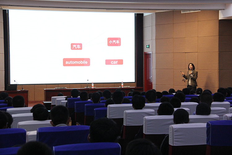 11月1日下午,北京理工大學(xué)吳霜副教授在我校實驗樓四樓報告廳為部分師生作了《英語學(xué)習(xí)中的雙語對比之“詞義對應(yīng)關(guān)系”》的講座。 吳霜副教授是北京理工大學(xué)外國語學(xué)院英語系的老師,她通過一個簡單的句子翻譯,為同學(xué)們講述了英漢詞義對應(yīng)存在的差異,讓同學(xué)們進一步了解了英漢翻譯的精妙之處。吳霜老師語言風(fēng)趣幽默,講授內(nèi)容淺顯易懂,同學(xué)們聽得津津有味。隨后,吳老師與同學(xué)們親切互動,解答了同學(xué)們關(guān)于語言學(xué)習(xí)、高校招生、出國深造等問題,受到同學(xué)們的歡迎。 我校十分重視學(xué)生的全面發(fā)展,經(jīng)常邀請高校的教授、學(xué)者來校講學(xué),進一步拓寬同學(xué)們的視野,增長見識,讓同學(xué)們從講座中汲取靈感,獲得學(xué)習(xí)的動力,助力學(xué)生全面成長。