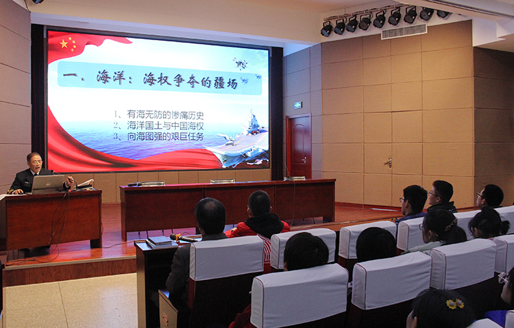 11月17日,海軍工程大學(xué)馬明田教授在我校實(shí)驗(yàn)樓4樓報(bào)告廳為部分師生帶來(lái)了《建設(shè)世界一流海軍》的國(guó)防教育講座。 馬明田教授的講座分為三個(gè)部分,包括海軍與海權(quán),海軍建設(shè)在國(guó)家發(fā)展中的戰(zhàn)略地位作用,以及海工大肩負(fù)的歷史使命等。馬教授運(yùn)用大家熟悉的國(guó)際案例,讓同學(xué)進(jìn)一步了解了當(dāng)今海洋力量和海洋安全的重要性,讓同學(xué)對(duì)我國(guó)的海洋事業(yè)有了進(jìn)一步的了解。報(bào)告后,馬明田教授還與同學(xué)們親切交流,耐心回答了同學(xué)們的問(wèn)題。 馬明田是海軍工程大學(xué)教授,海軍專(zhuān)業(yè)技術(shù)大校。在海軍信息安全教學(xué)與科研領(lǐng)域都有突出成就。同學(xué)們?cè)谥v座中,加深了對(duì)當(dāng)今的海洋局勢(shì)和我國(guó)的國(guó)防建設(shè)的了解,更激發(fā)了大家勵(lì)志成才,報(bào)效祖國(guó)的學(xué)習(xí)熱情。