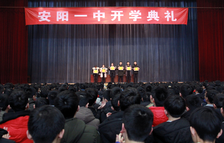 2月21日下午,我校在體育館舉行2018-2019學(xué)年第二學(xué)期開學(xué)典禮,對上學(xué)期涌現(xiàn)的優(yōu)秀班主任、先進(jìn)班集體、優(yōu)秀團(tuán)支部,以及2019屆奧賽獲獎學(xué)生等先進(jìn)集體和個(gè)人進(jìn)行了表彰。典禮由王國卿副校長主持,陳朝陽副校長宣讀了表彰決定。 王國卿副校長根據(jù)教育部最新文件精神,重申了《安陽一中學(xué)生在校一日常規(guī)》中有關(guān)禁止學(xué)生在校使用手機(jī)的補(bǔ)充規(guī)定,并針對上期末安全問題調(diào)查學(xué)生問卷中,同學(xué)們反映的部分問題進(jìn)行了通報(bào),教育同學(xué)們要特別注意交通安全,不要在沒有安全保障的路邊攤點(diǎn)購買食品等。 崔彥軍副校長在新學(xué)期致辭中,從學(xué)?;A(chǔ)設(shè)施改造升級、穩(wěn)步上升的教育教學(xué)質(zhì)量兩方面,回顧了我校近年來取得的成績。崔校長還強(qiáng)調(diào),作為安陽一中學(xué)子,同學(xué)們應(yīng)樹立社會精英意識、身份意識、安全意識、標(biāo)準(zhǔn)意識,以高度的社會責(zé)任感、頑強(qiáng)拼搏的精神、嚴(yán)格自律的生活態(tài)度投入到每天的學(xué)習(xí)和生活當(dāng)中,做優(yōu)秀的安陽一中人。