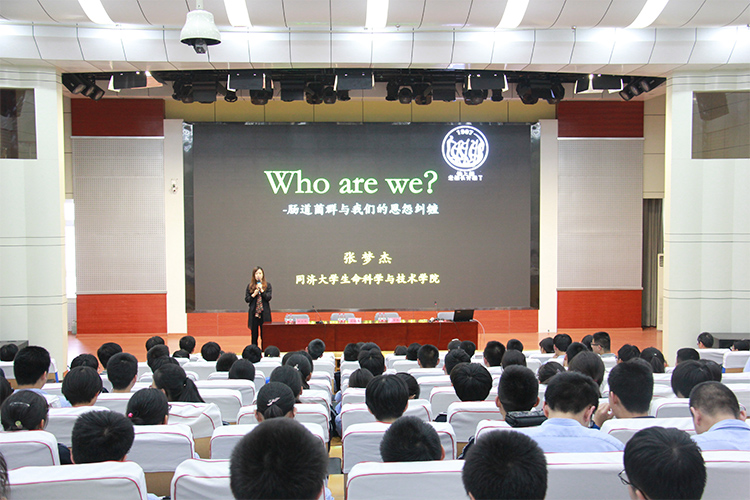 張夢(mèng)杰教授則在《腸道菌群與我們的恩恩怨怨》的報(bào)告中,用貼近生活的事例深入淺出地介紹了生命科學(xué)的前景和應(yīng)用。