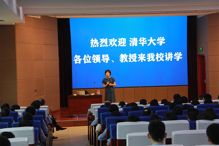 講座分三個環(huán)節(jié)舉行。第一環(huán)節(jié),清華大學河南招生組副組長丁青青教授通過講述自己求學經歷,并以物理、英語學科為例介紹了自己的學習方法,建議大家做事要有目標,并為目標付出艱苦的努力。在大家的歡呼聲中,丁老師清唱了清華大學的校歌,介紹了清華大學的校風校訓以及基礎設施等,并勉勵大家為學在嚴、為人要正。隨后,丁老師把時間交給同學,一對一回答了同學們關于學習、生活方面的問題。