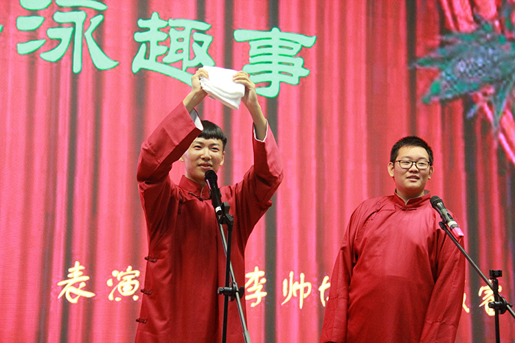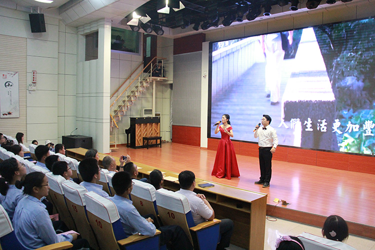 9月29日晚,我校在電教樓5樓報告廳隆重舉行慶祝新中國70周年“我愛我的祖國”國慶文藝匯演。 學(xué)生樂隊搖滾彈唱《花火》震撼開場,燃爆了整個舞臺;王雨田同學(xué)身姿曼妙,仿佛舞臺上的精靈,輕盈跳躍中詮釋了《九兒》的不屈抗爭;話劇《險象環(huán)“聲”》笑料百出,演員們形神兼?zhèn)洌鋸埖谋硌葑層^眾們捧腹不止;辛蘭芳老師鋼琴獨奏《童年的回憶》,熟悉的曲調(diào)從指尖飛出,讓人身心愉悅;小白楊合唱團用歌聲描繪祖國的大好山河,高唱《我和我的祖國》。隨著現(xiàn)場的愛國熱情不斷高漲,全體演職人員和觀眾自發(fā)大合唱,晚會在《歌唱祖國》的雄壯歌聲中落下帷幕。 今年是建國70周年,此次慶祝活動不僅豐富了校園文化生活,也展示出我校師生的藝術(shù)修養(yǎng)及朝氣蓬勃、積極向上的精神風(fēng)貌,廣大師生也用自己的方式表達了對偉大祖國的深情祝福。