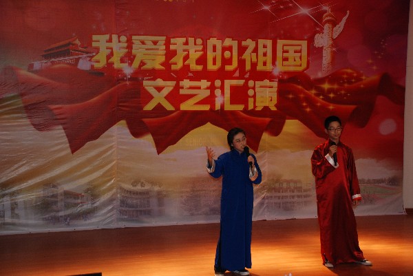 2012年9月28日晚,市一中在學(xué)校電教樓五樓報告廳舉行“我愛我的祖國”文藝匯演,慶祝第63個國慶節(jié)的到來。參加文藝匯演的節(jié)目均由學(xué)生自編、自導(dǎo)、自演。相聲、小品、話劇、舞蹈、歌曲、戲曲等節(jié)目形式多樣,異彩紛呈,充分展示了一中學(xué)生多才多藝的個性。文藝匯演歌頌了新中國63年來百折不撓、不斷進(jìn)取的光輝歷程,豐富了學(xué)生在校園的文化生活。