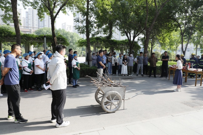 上午8時30分,消防培訓(xùn)準(zhǔn)時開始。綜合辦公室(一)主任史曉娜詳細(xì)介紹了本次演練流程,要求參訓(xùn)人員掌握逃生自救和初起火災(zāi)撲救的方法。隨后,轄區(qū)派出所警官錢永紅通過火災(zāi)典型案例,重點(diǎn)剖析規(guī)范操作消防設(shè)施的重要性。