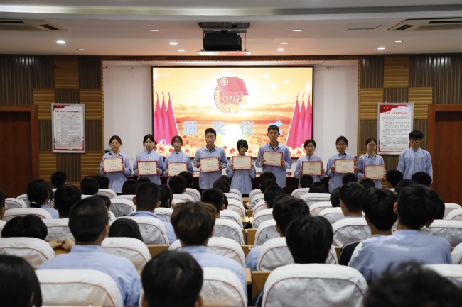 儀式在嘹亮激昂的共青團(tuán)團(tuán)歌聲中達(dá)到高潮。在最后環(huán)節(jié),學(xué)校為優(yōu)秀團(tuán)支書、杰出學(xué)生會(huì)干部和先進(jìn)團(tuán)總支干部頒獎(jiǎng),為新團(tuán)員樹立榜樣,激勵(lì)他們見賢思齊、砥礪奮進(jìn)。